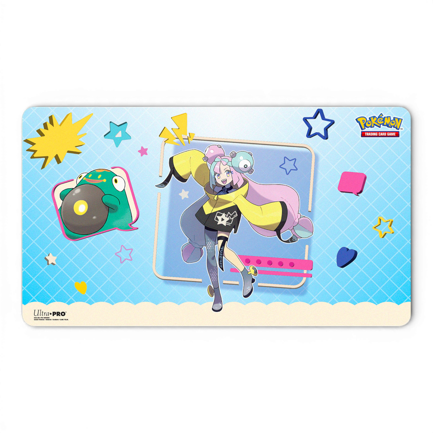 Playmats for Pokemon feature vibrant, full-color artwork of Iono and Bellibolt. Made with a soft fabric top to reduce damage to cards during play and a non-slip rubber backing to keep the playmat from shifting during use, playmats enhance the gameplay experience. With dimensions of approximately 24 in. x 13.5 in., a playmat also makes an excellent oversize mousepad for home or office.