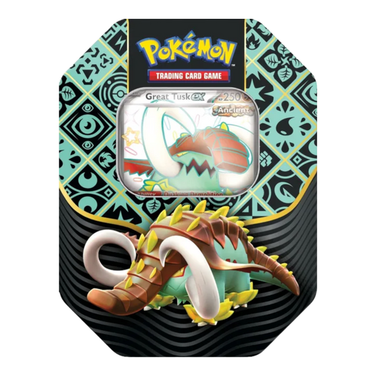 Shiny Pokémon ex in the Spotlight! Behold the breathtaking power of Shiny Pokémon ex who transcend the boundaries of time and type! With this tin, choose the quaking force of Great Tusk ex as an Ancient...Regular price From $44.99Regular price From $44.99 -