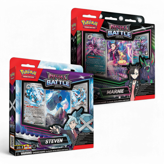 Unleash a Battle of Rivals! Two new Pokémon TCG: Rival Battle Decks are ready to rumble! Team up with Galar Gym Leader Marnie and her tough-fighting team, or call upon Hoenn Champion Steven and his heavy-metal...Regular price From $29.99Regular price From $29.99 -
