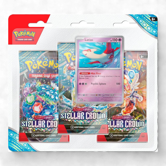 Each blister comes with 3 Stellar Crown booster packs, a coin, and a promotional card of Latias or Tinkaton.Regular price $15.99Regular price $15.99 -
