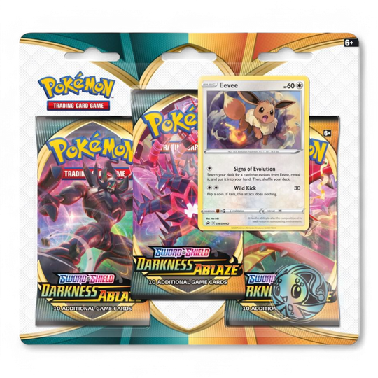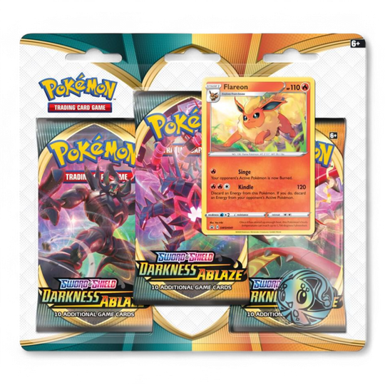 Each 3 Pack blister comes with 3 Sword & Shield—Darkness Ablaze booster packs, 1 coin, and a cosmos holofoil of Flareon or EeveeRegular price $25.99Regular price $25.99 -
