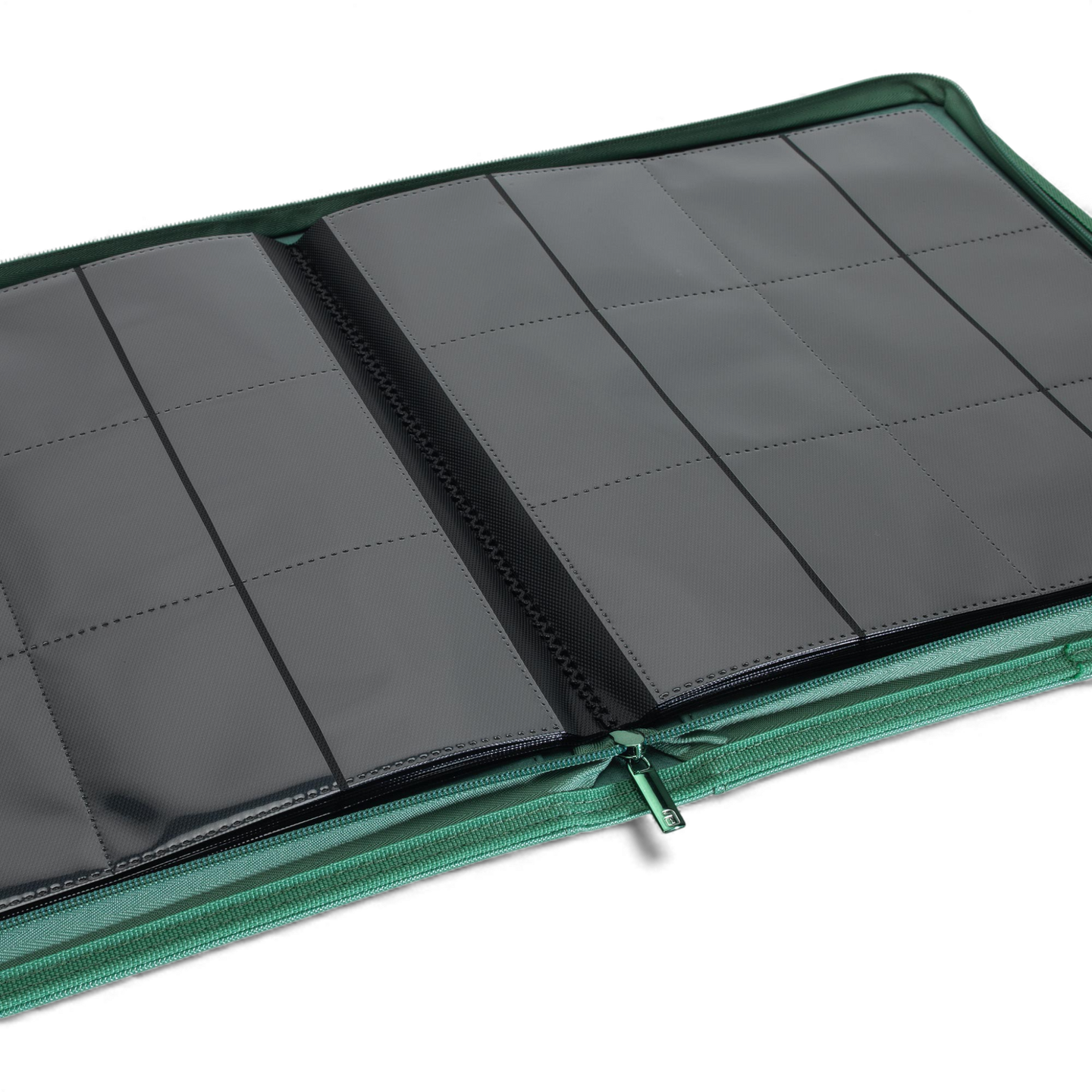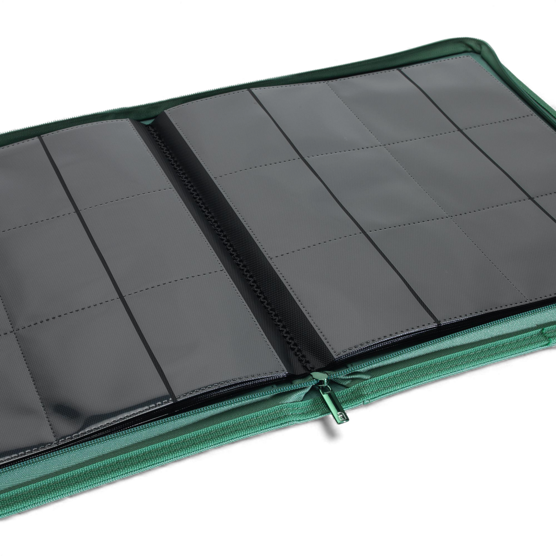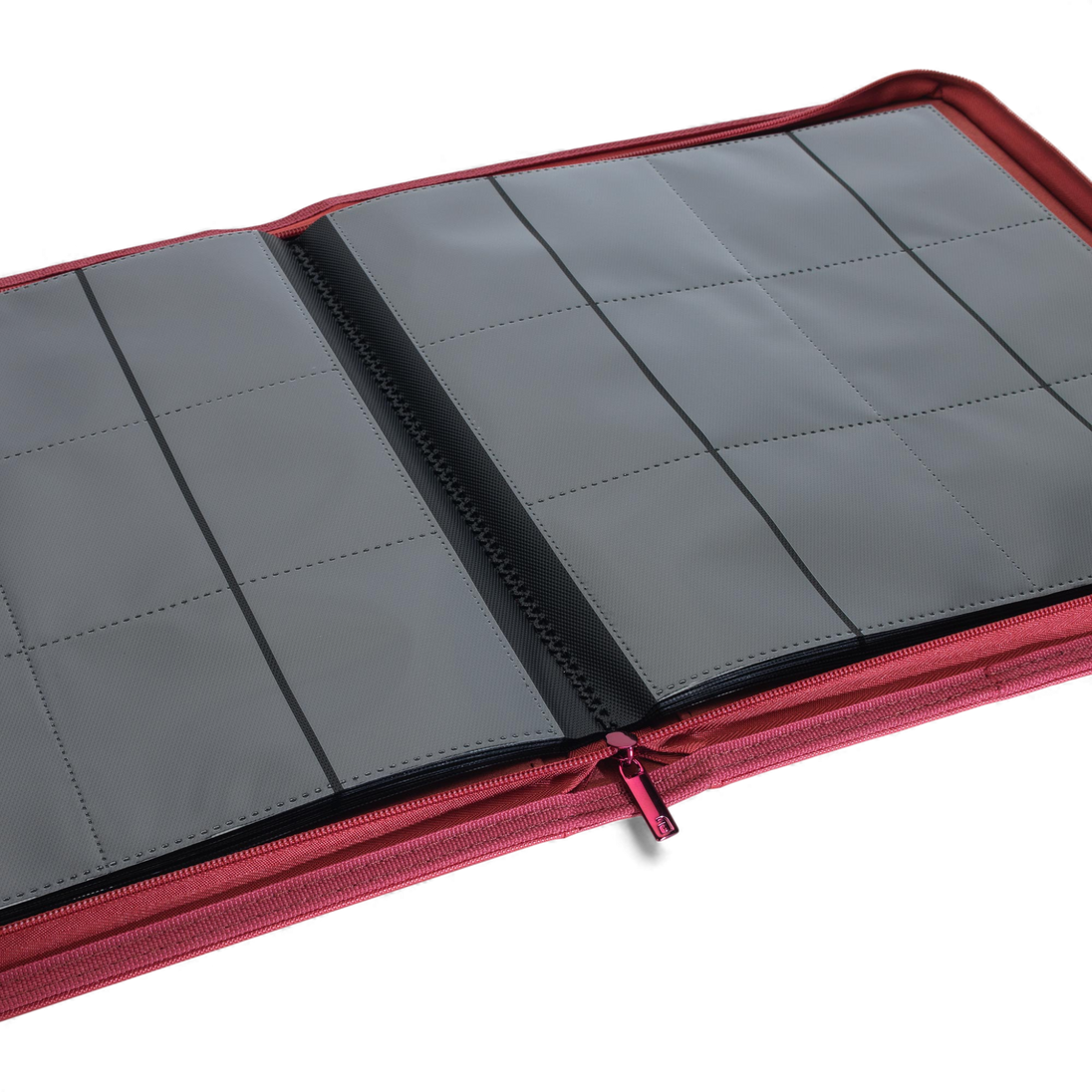 12 pocket per page premium quality zip-up trading card binder. With padded, extra rigid front and rear covers made from non-slip, water resistant Exo-Tec® material. 20 pages holding 480 cards. Made from archival-safe, acid-free non-PVC material