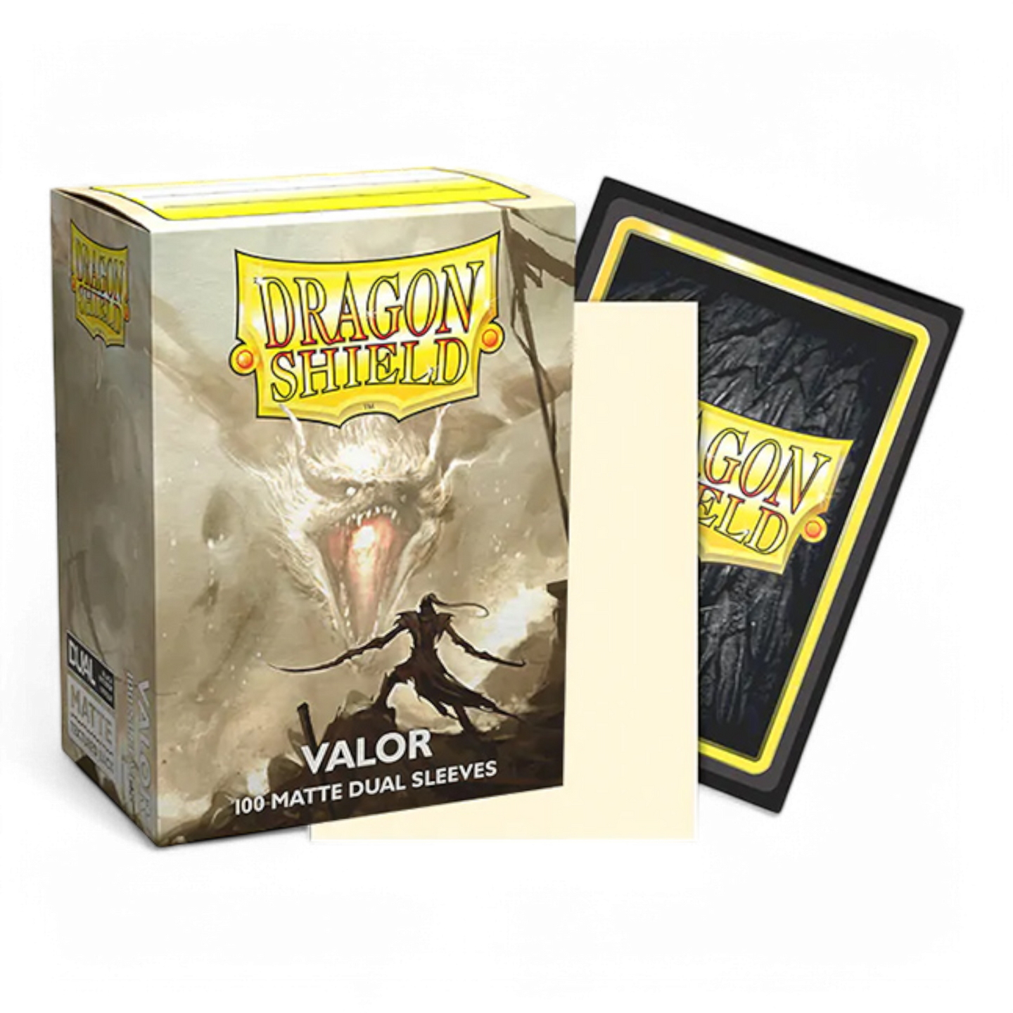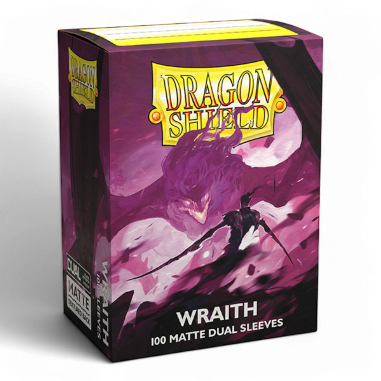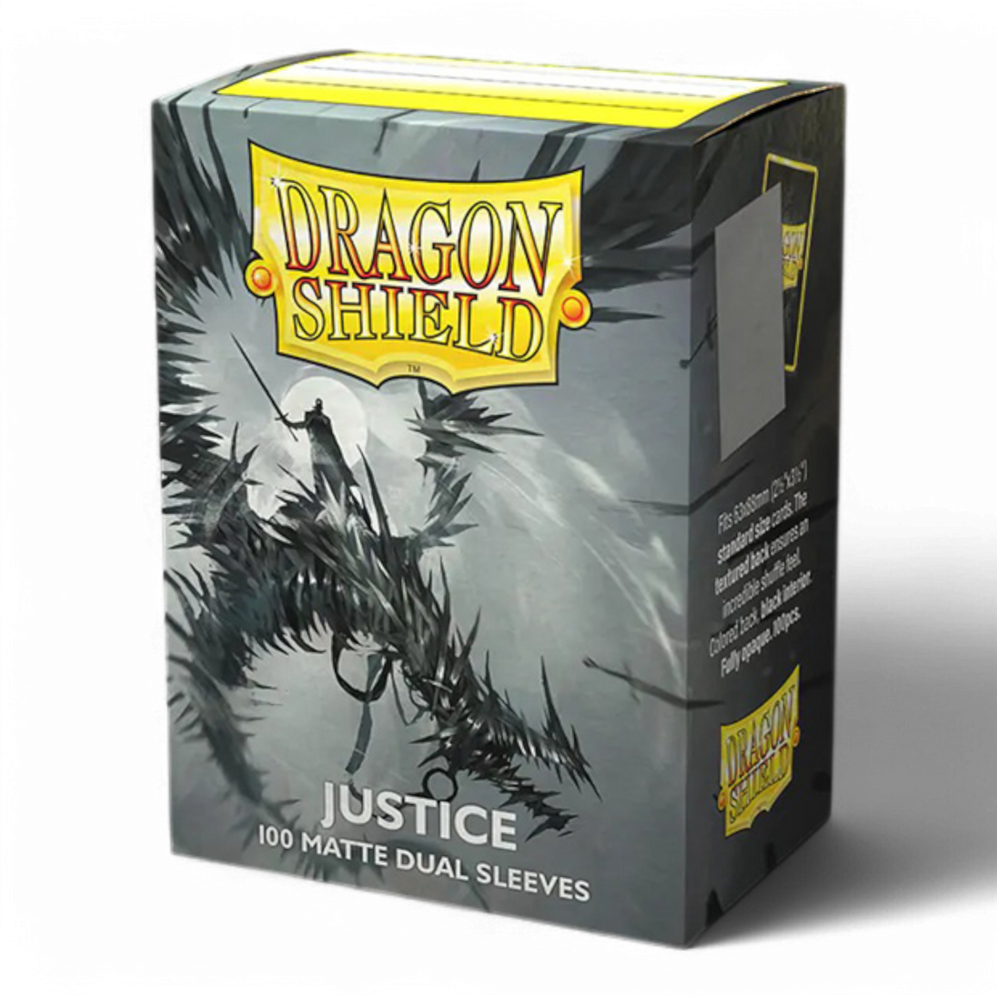 Dragon Shield Standard Matte Dual sleeves have a clear front and a textured matte back. They are fully opaque, with a black interior, which makes for an elegant backdrop for black bordered cards.