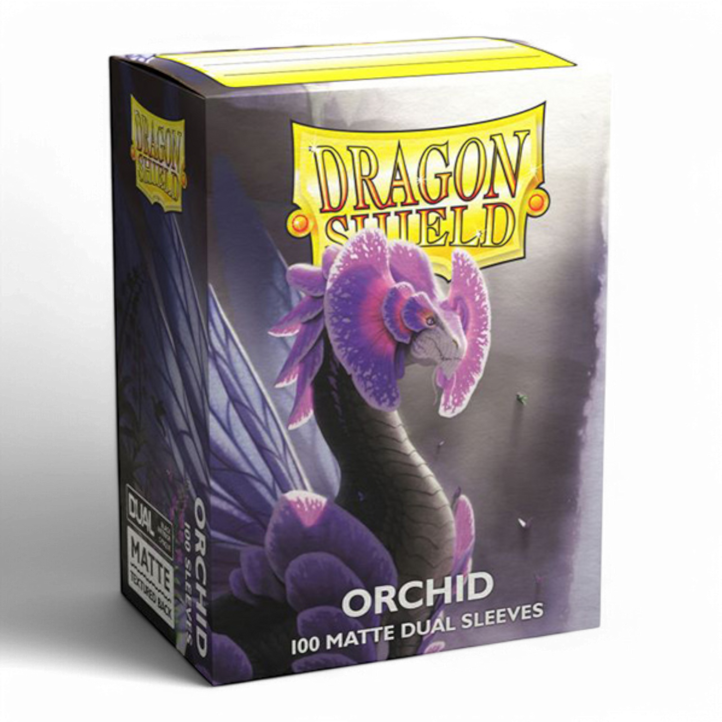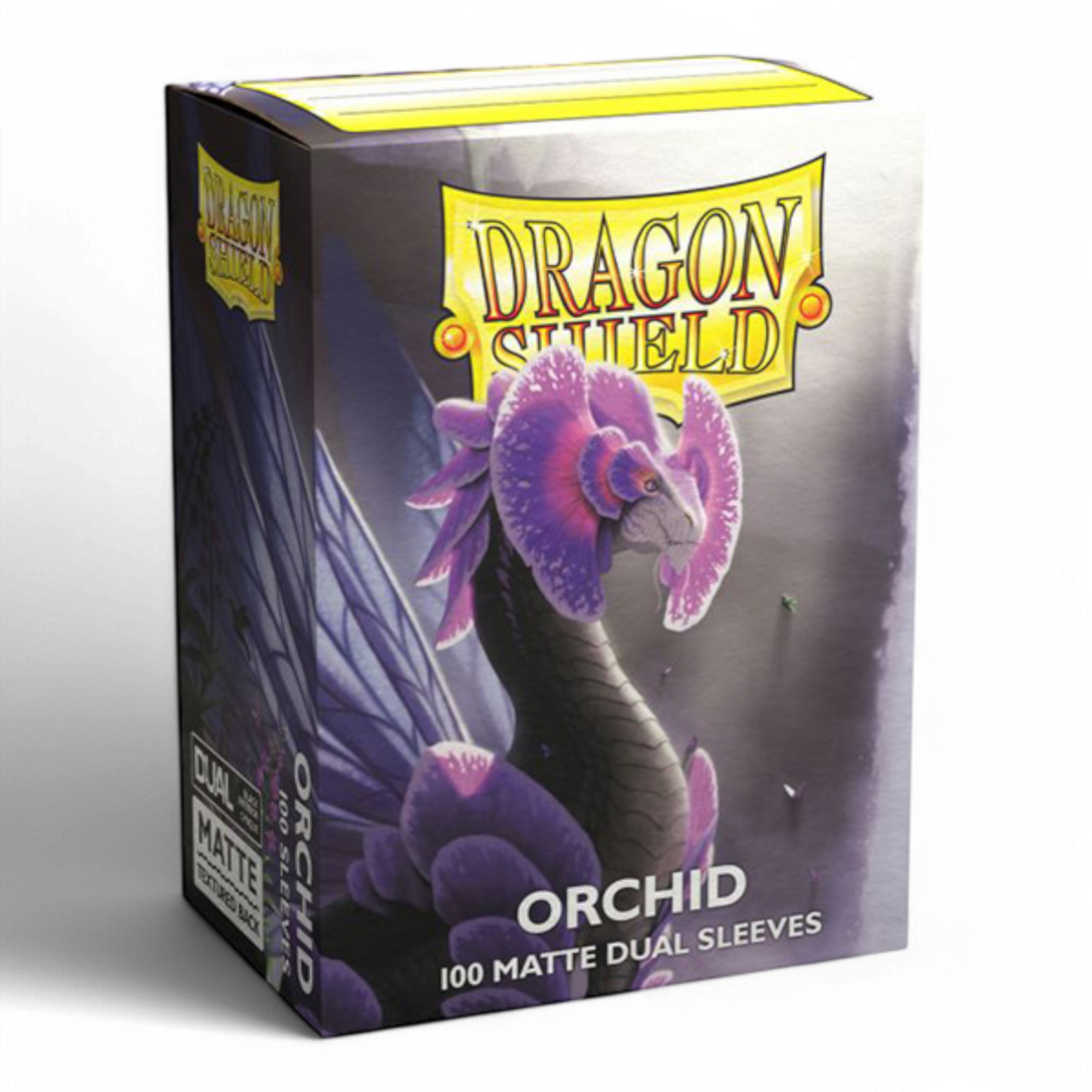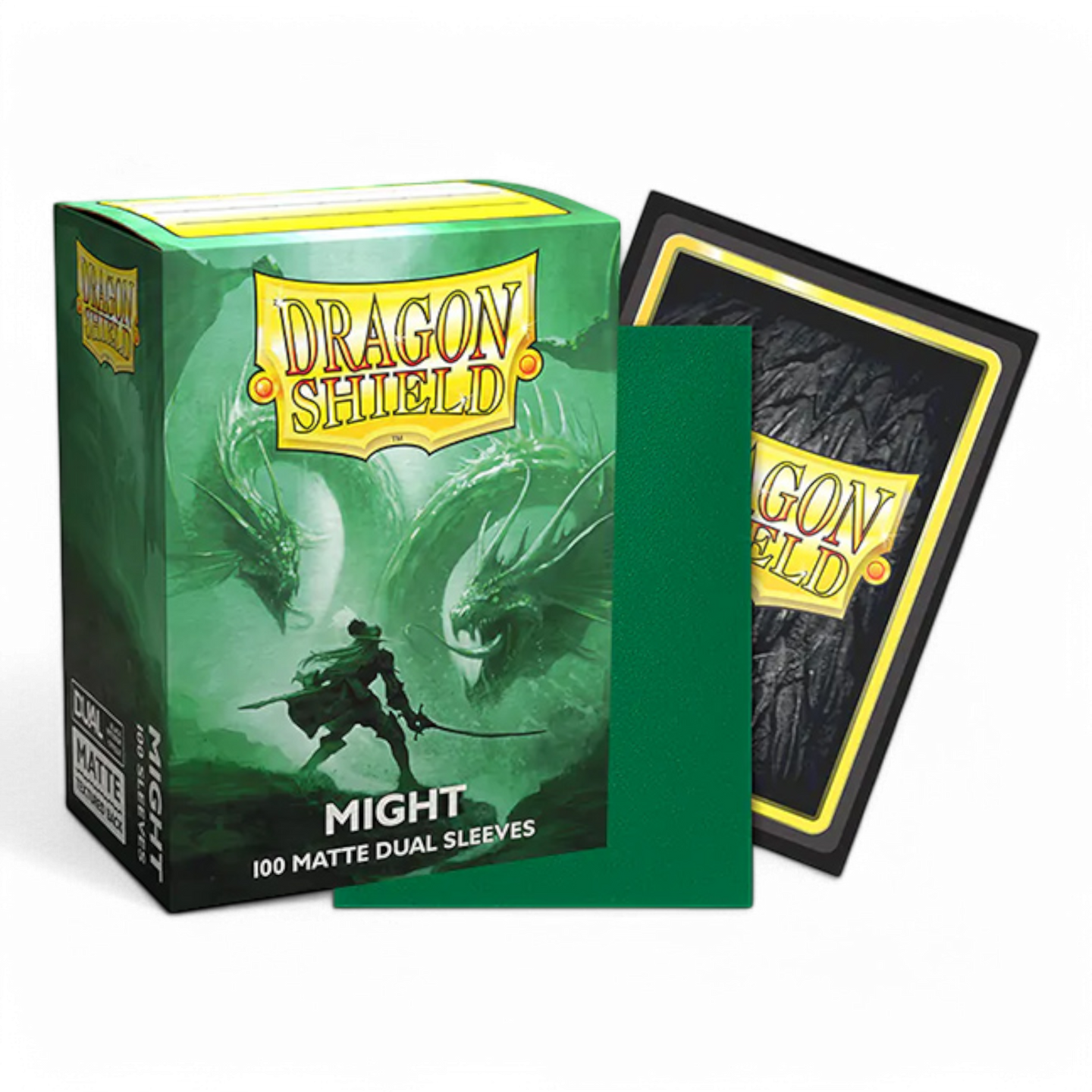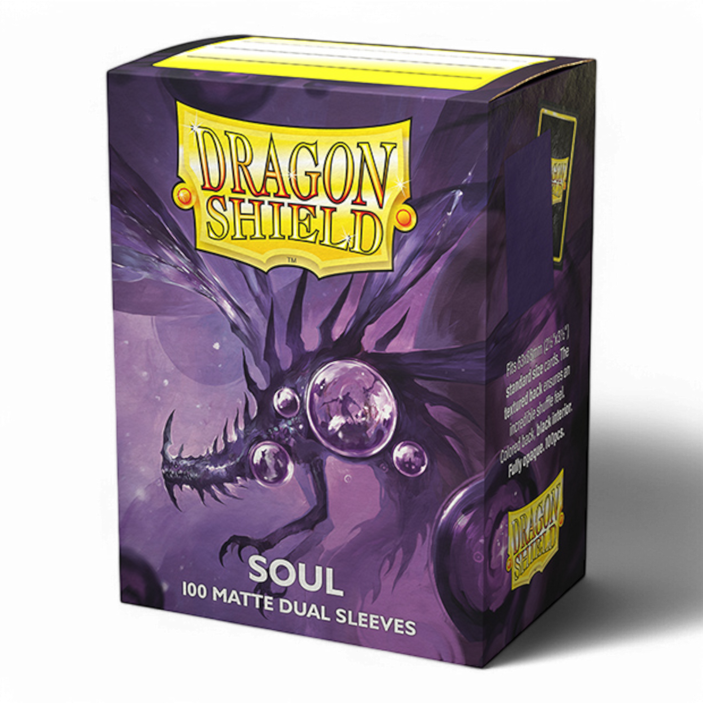 Dragon Shield Standard Matte Dual sleeves have a clear front and a textured matte back. They are fully opaque, with a black interior, which makes for an elegant backdrop for black bordered cards.