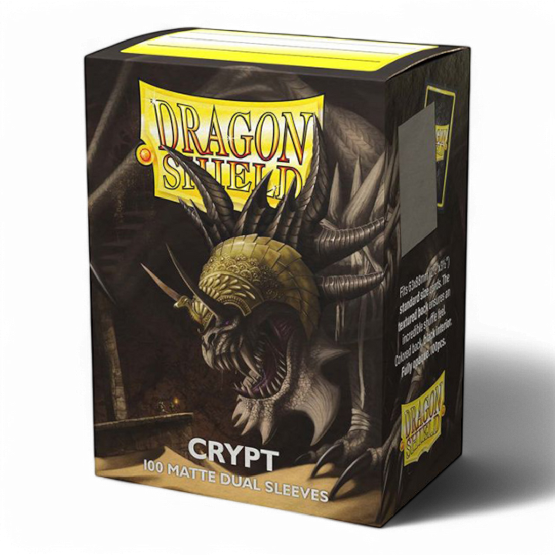 The sturdy cardboard box fits 75+ single sleeved cards or 65+ double sleeved cards.