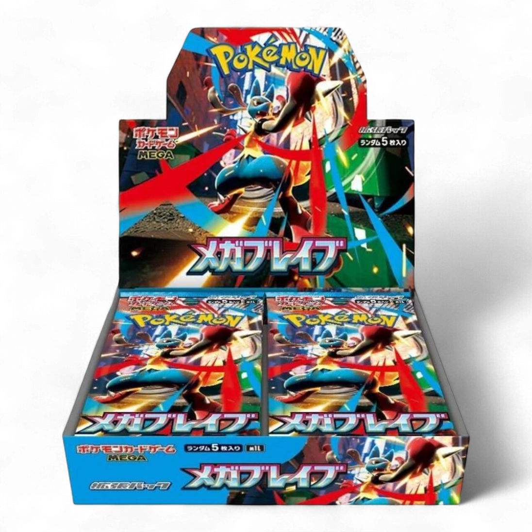 Each sealed Japanese Mega Brave Booster Box contains 30 booster packs containing 5 random cards each.