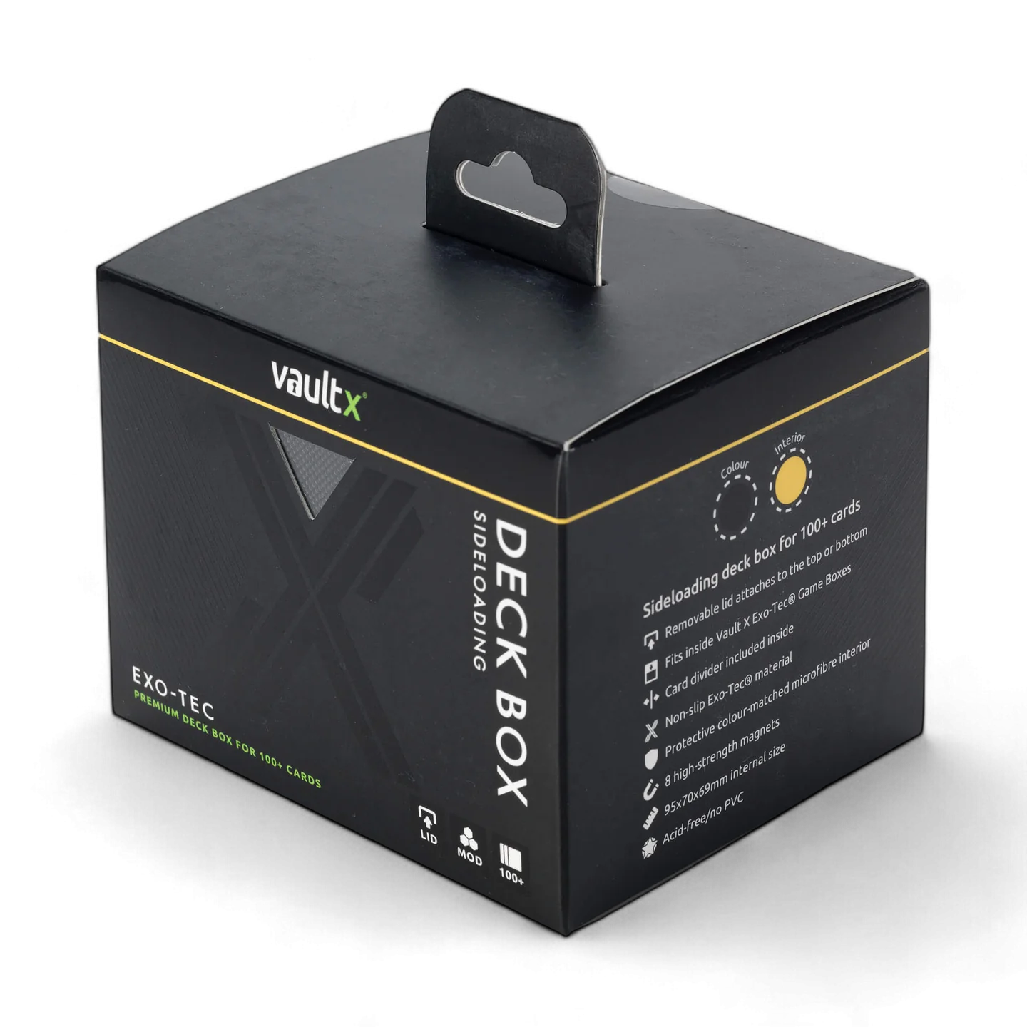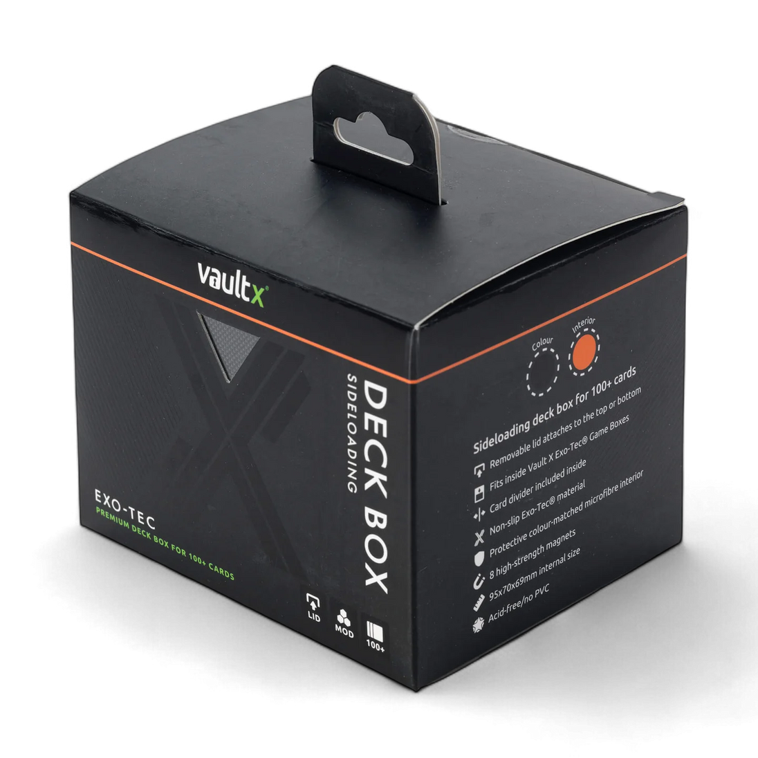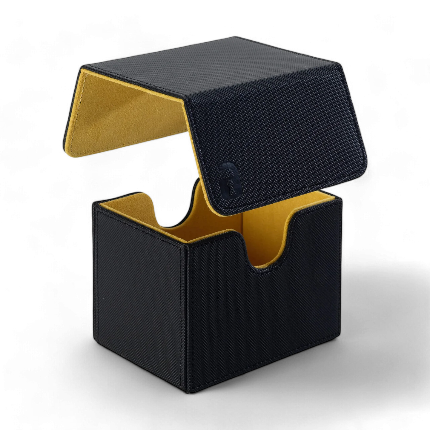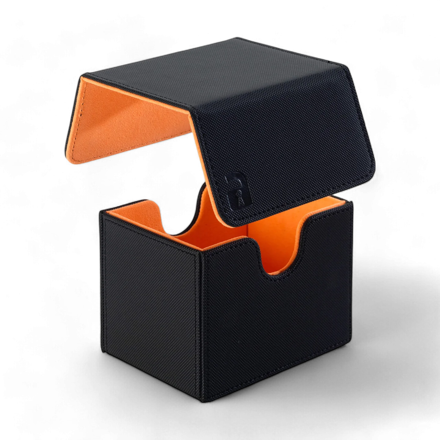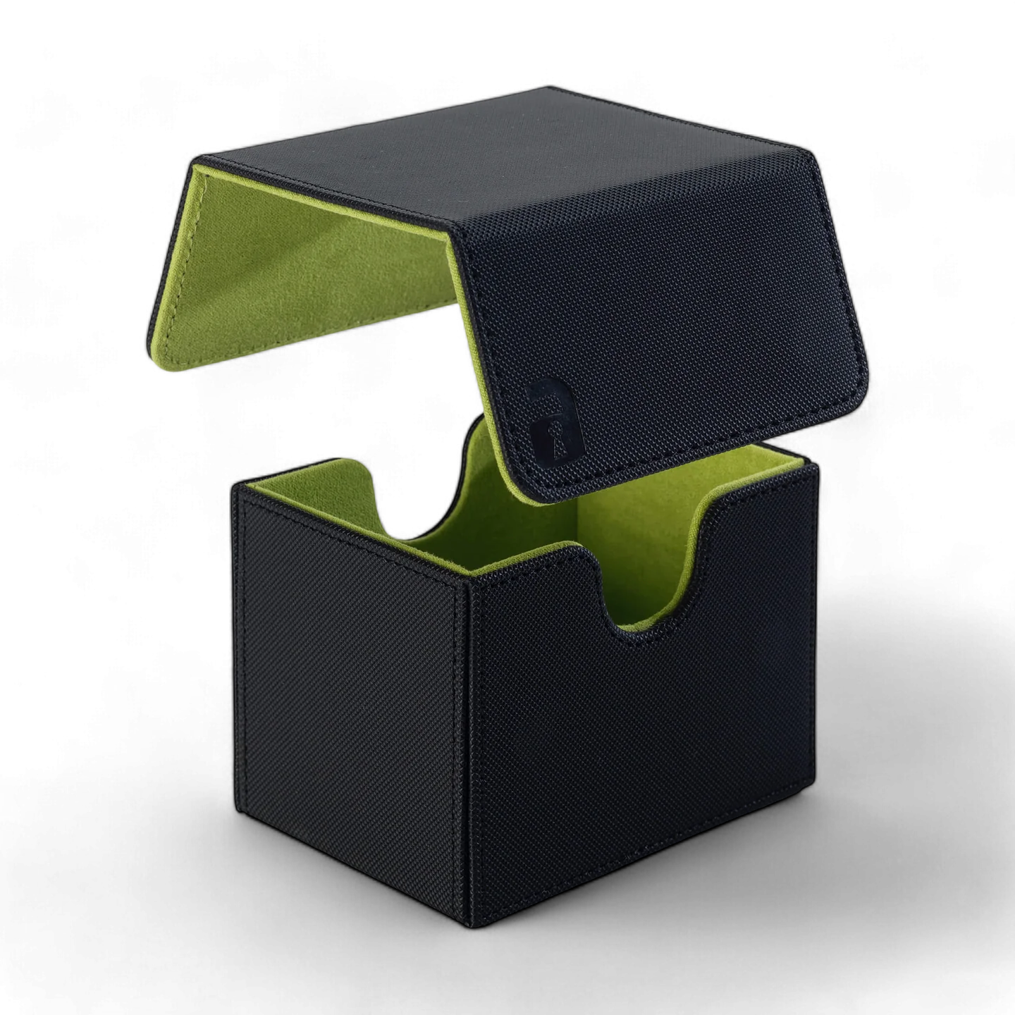 Premium quality deck box made with a durable, water-resistant Exo-Tec® exterior paired with a soft, protective microfiber lining. The detachable lid attaches to the top or bottom of the box allowing for mix and match customisation, whilst still keeping your cards secure with 8 high-strength magnets! Card divider included inside.