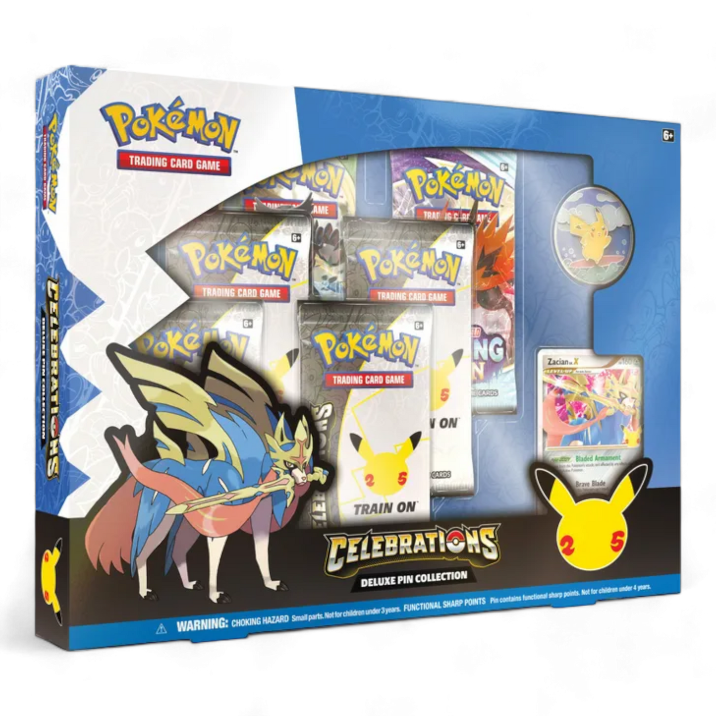 The Pokémon TCG: Celebrations Deluxe Pin Collection includes: