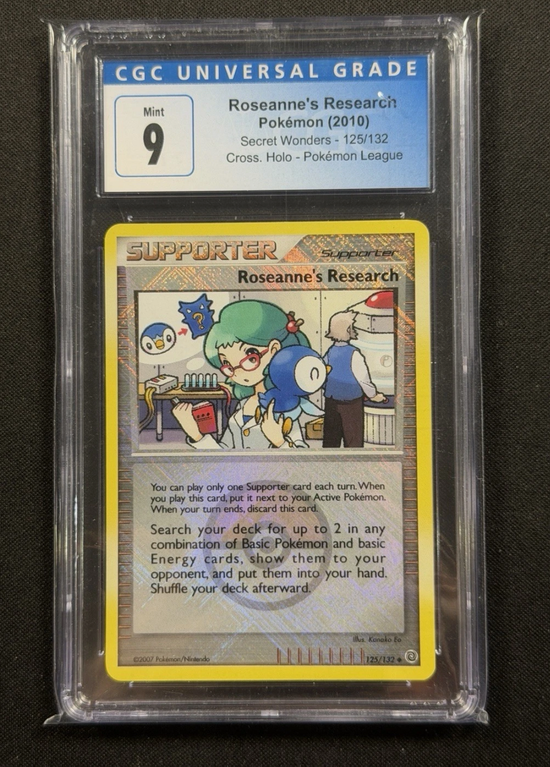 2010 Pokemon Secret Wonders League Promo Cross Holo Roseanne's Research - League Promo 125/132 - PSA 9