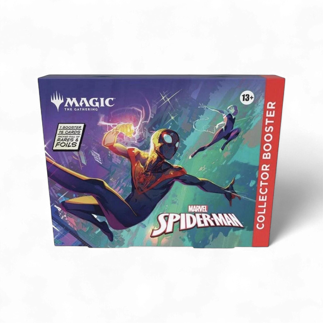 Collector Boosters gather all the coolest cards and foil treatments in one place! Each booster contains Rares and/or Mythics, Traditional Foils, a Borderless basic land, and more. Web-slinging heroes may encounter even more beautiful foils and picture-perfect lands. You could also find the headliner card—the most collectible pull of all!