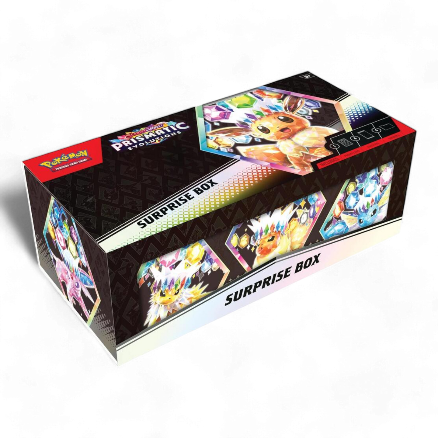 The Pokémon TCG: Scarlet & Violet—Prismatic Evolutions Surprise Box includes: