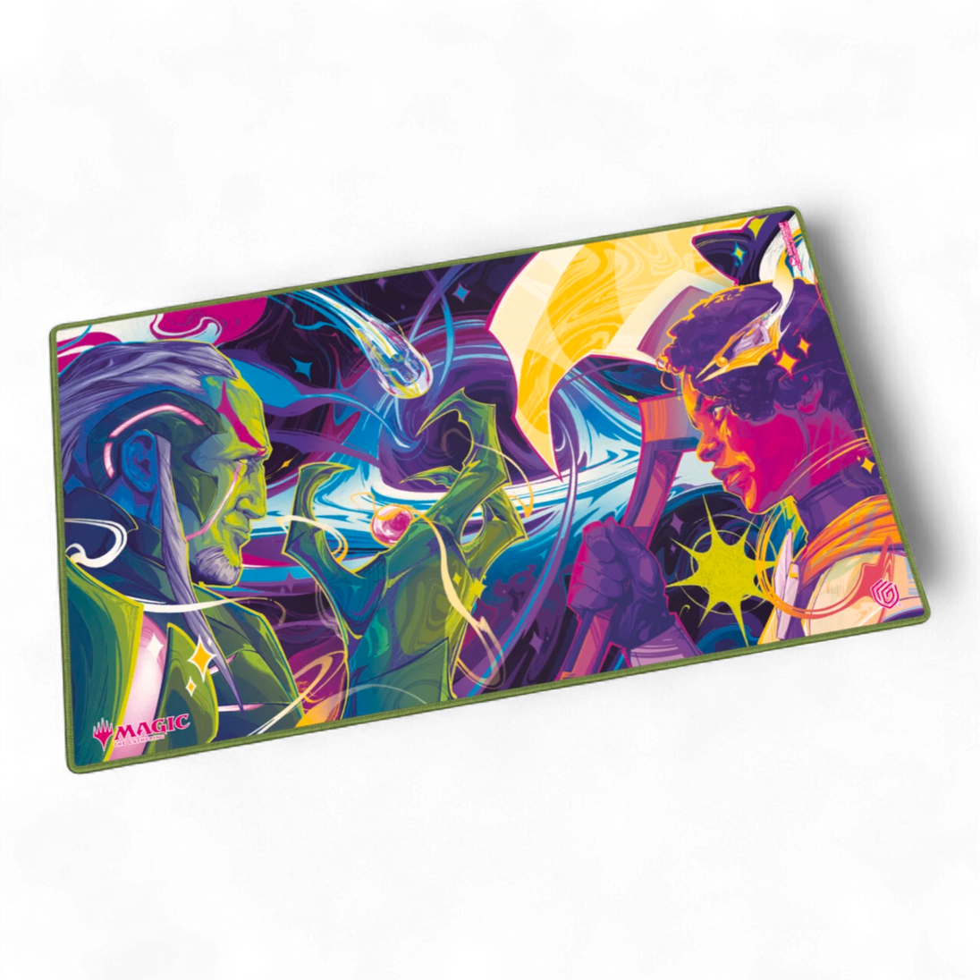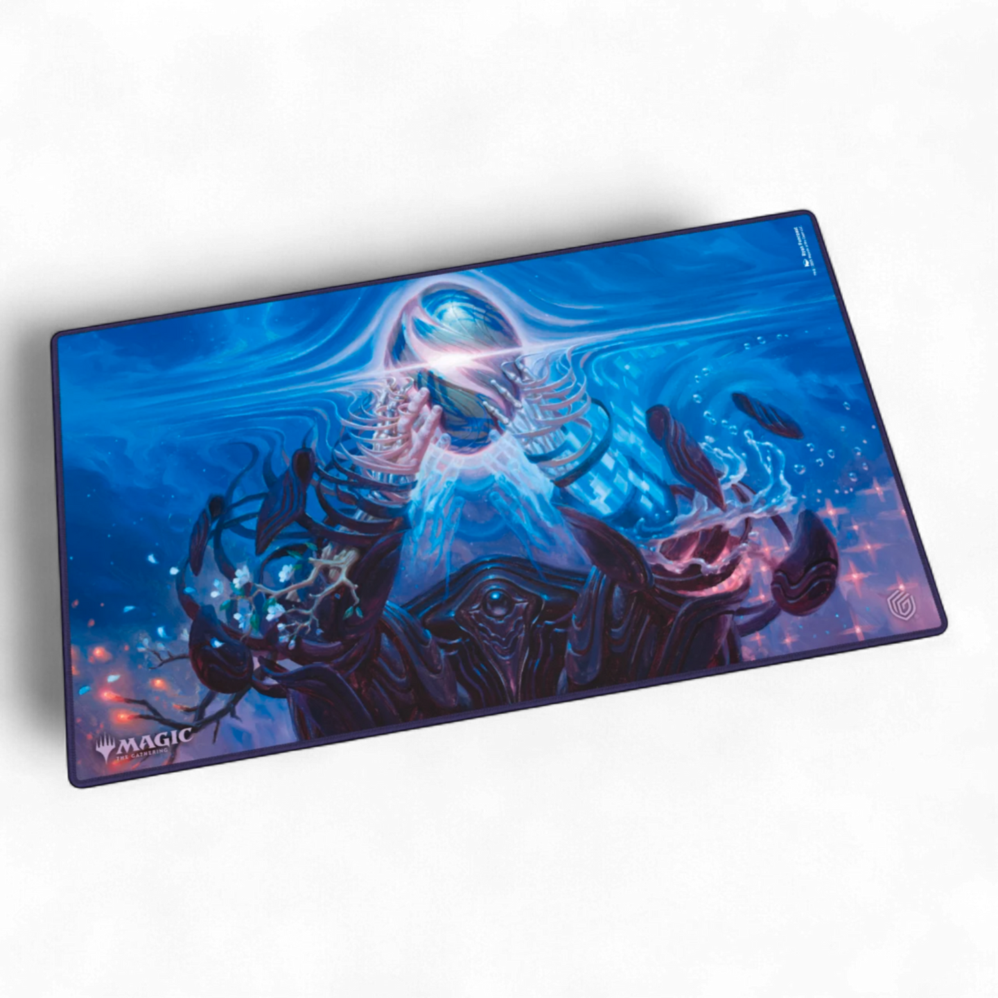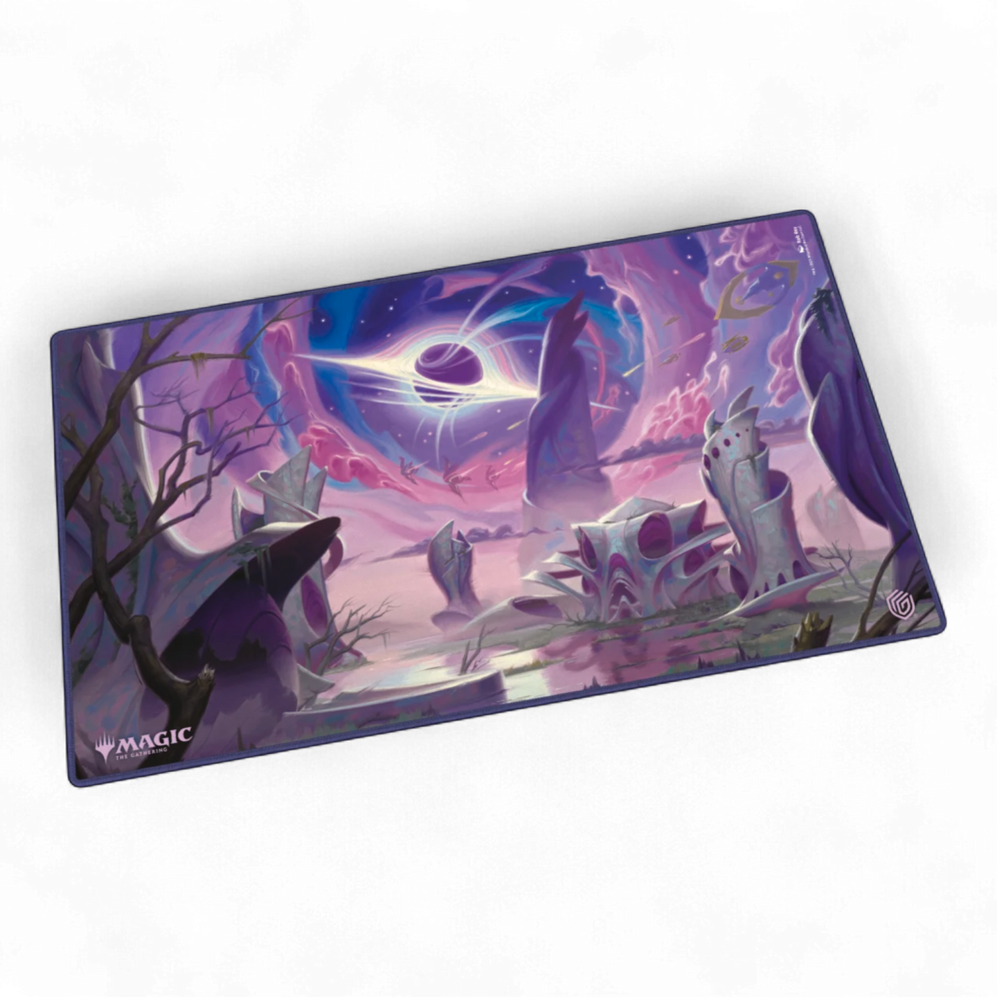 The Play-Mat in the standard size 61x35cm shows officially licensed artworks from Magic: The Gathering's "Edge of Eternities" set. The soft cushioned Play-Mat with non-slip underside improves the gaming experience, protects gaming cards and accessories, and is even more durable than classic Play-Mats thanks to its stitched edges.