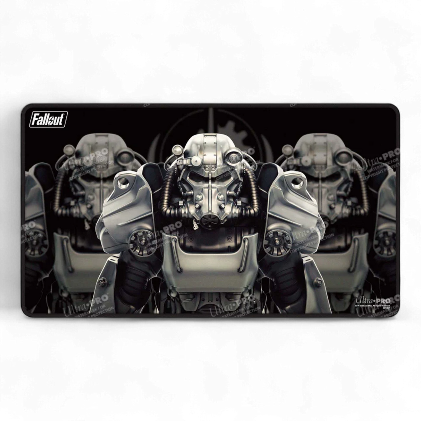 This playmat features artwork for Fallout - Brotherhood of Steel and black stitched edges for an added premium feel. Each playmat is made with a soft fabric top to reduce damage to cards during play, and the non-slip rubber backing keeps the playmat from shifting during use. With dimensions of approximately 24 in. x 13.5 in., a playmat also makes an excellent oversized mousepad for home or office