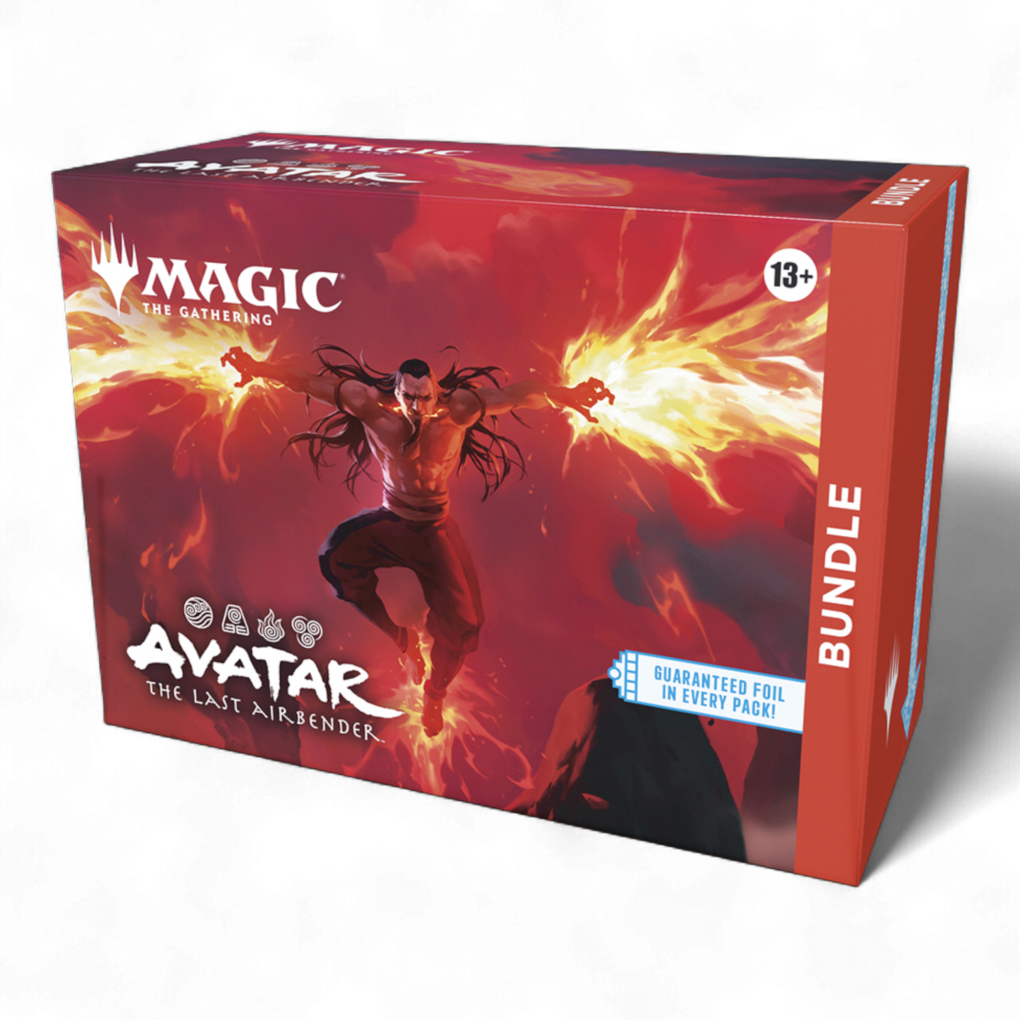 Wield the power of the elements as Avatar: The Last Airbender teams up with Magic: The Gathering! This Bundle includes 9 Magic: The Gathering | Avatar: The Last Airbender Play Boosters (each containing 14 cards), 1 Traditional Foil promo card with Bundle-exclusive alternate art, 15 Traditional Foil Land cards (5 with full art), 15 nonfoil Basic Land cards (5 with full art), 1 oversized Spindown life counter, 1 Magic: The Gathering | Avatar: The Last Airbender card storage box, and 2 reference cards.