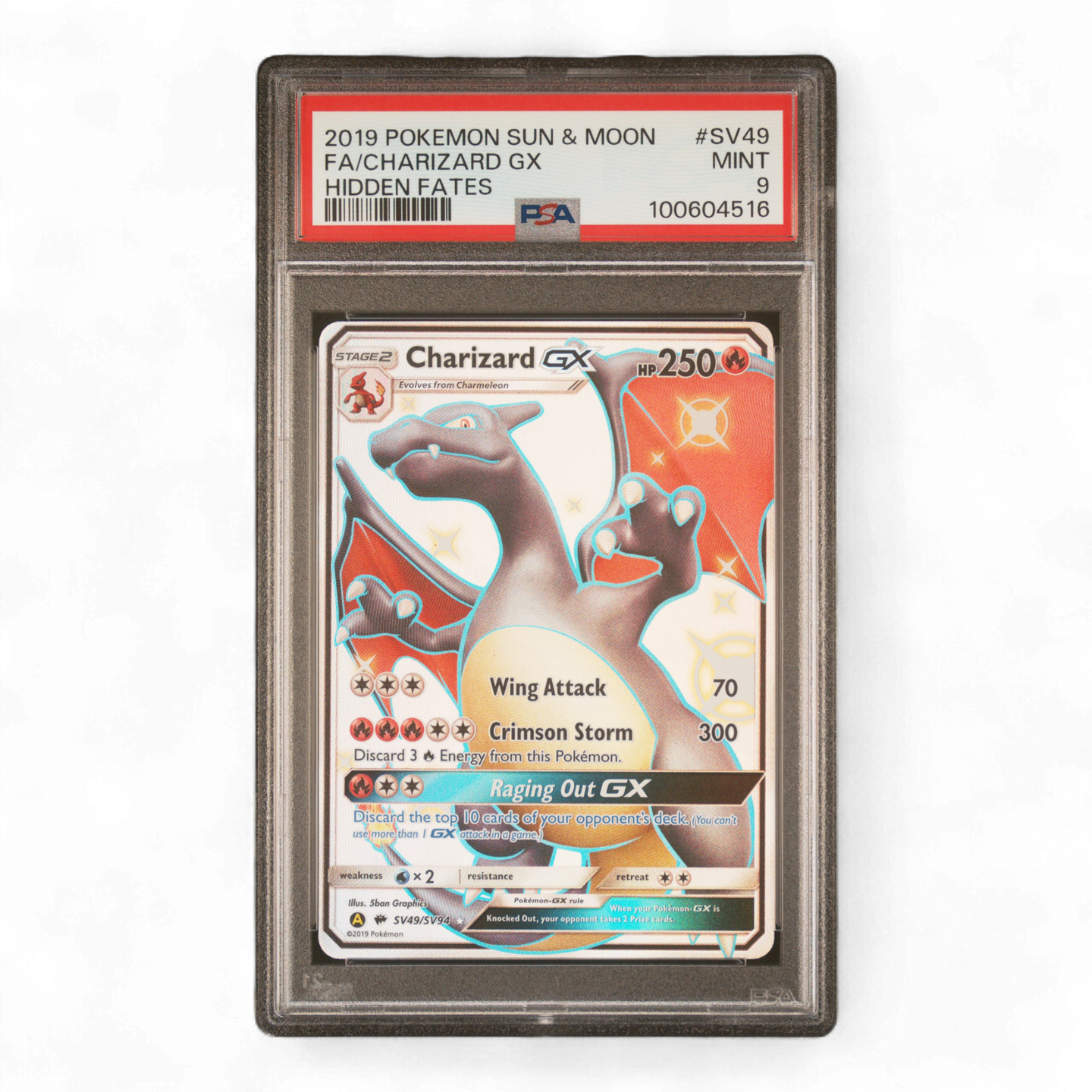 2019 Pokemon Sun & Moon Hidden Fates Charizard GX - Shiny Full Art SV49 - PSA 9