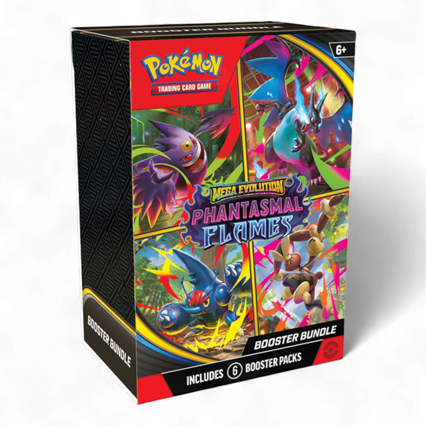 Expand your collection with this Booster Bundle containing six booster packs from Pokémon TCG: Mega Evolution—Phantasmal Flames!